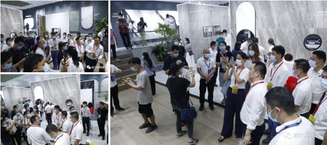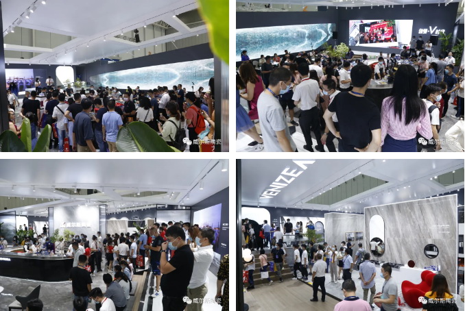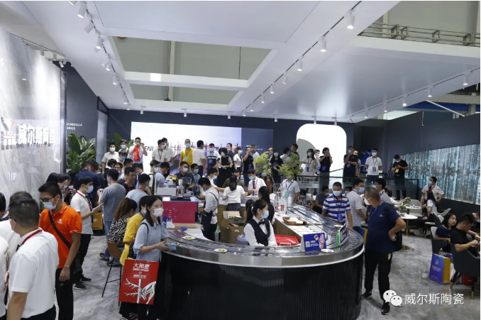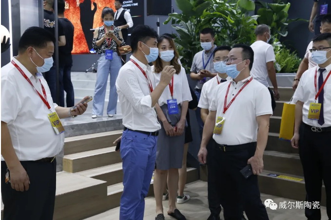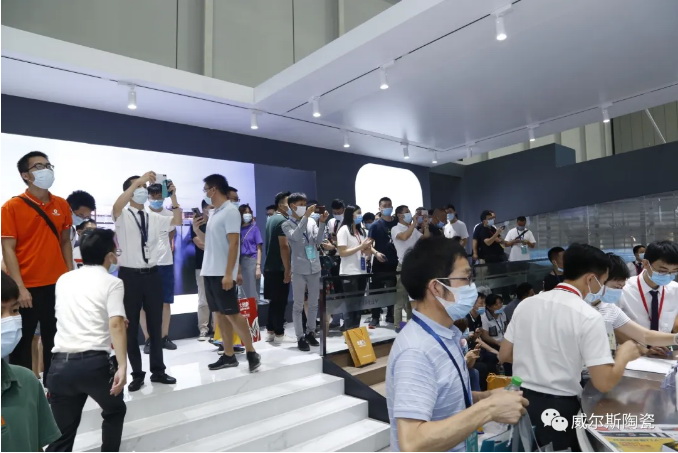 7月21日,2020潭洲国际陶瓷展如火如荼进行,威尔斯“创领·V时代”展馆人气依旧火爆,客商络绎不绝,源源不断。